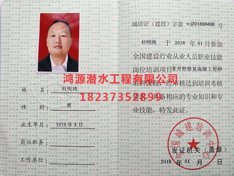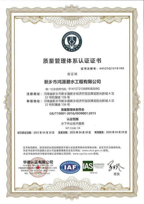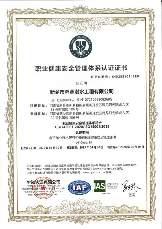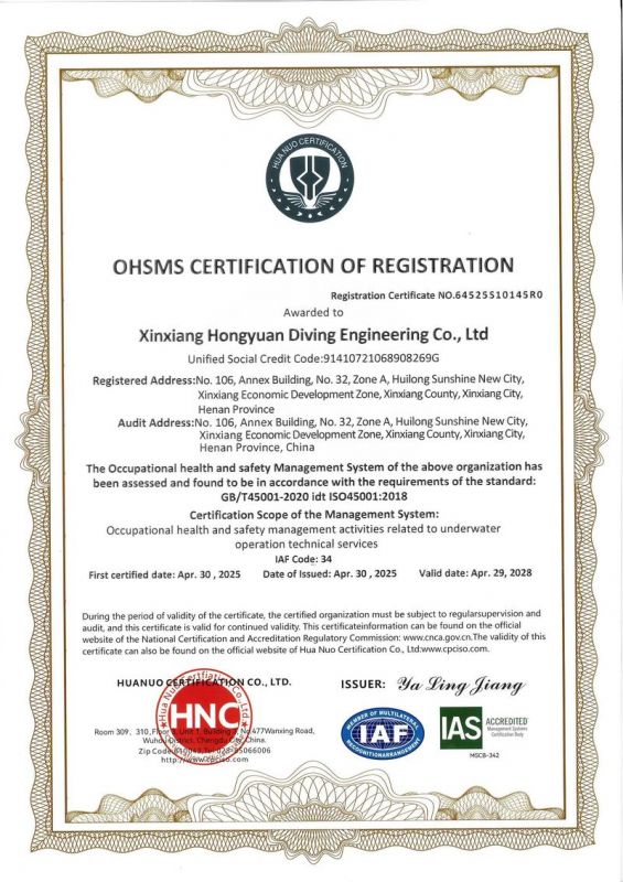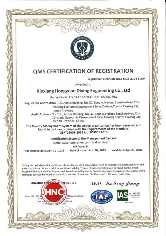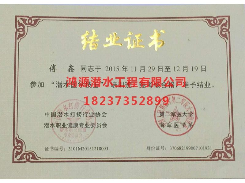 新鄉(xiāng)市鴻源潛水工程有限公司,有從事潛水行業(yè)二十多年的潛水團隊。公司具有獨立法人資格,注冊資金600萬元。   公司的潛水人員、潛水檢測人員、潛水焊接人員均經(jīng)過正規(guī)培訓,全部持有國內(nèi)權威機構頒發(fā)的資質證書。我公司水下焊接可靠,質量優(yōu)良,技術過硬,可水下焊接鋼管樁,水下焊接犧牲陽極鋅塊,水下焊接連接梁,水下封堵焊接等等施工,報價合理,拒絕暴利,竭誠為您服務!水下電焊工程,水下電焊報價合理水廠電廠的水池、水道清淤、泵房清理、管道鋪放、攔污柵清污、更換閘門起落、導流洞、水庫壩體等維修施工水下補強加固:對水利電力系統(tǒng)水庫、大壩及沿海內(nèi)河港口、碼頭等水工建筑物水下鋼結構或混凝土結構缺陷進行。無論是對現(xiàn)在或將來,都將是一項非常有意義的工作。水下焊接將成為水下作業(yè),水下安裝,水下維修等水下作業(yè)工程中不可或缺的重要工藝手段.公司堅持“先進的技術設備.優(yōu)質的服務質量.服務效率.熱情的服務態(tài)度,為生產(chǎn)經(jīng)營理念,以拒絕暴利合理收費為原則立足全國市場。我們將以優(yōu)質的產(chǎn)品與售后服務來打造用戶良好體驗。愿同新老客戶竭誠合作、互惠互利、共創(chuàng)輝煌!水下電焊工程,水下電焊報價合理,鋼圍堰清淤公司鴻源-水下電焊工程,水下電焊報價合理,鋼圍堰清淤公司,水下電焊工程。      新鄉(xiāng)市鴻源潛水工程有限公司我公司成功打造鴻源優(yōu)質服務。公司的潛水人員、潛水檢測人員、潛水焊接人員均經(jīng)過正規(guī)培訓,全部持有國內(nèi)權威機構頒發(fā)的資質證書。經(jīng)過多年經(jīng)營,公司具備公司具有獨立法人資格。